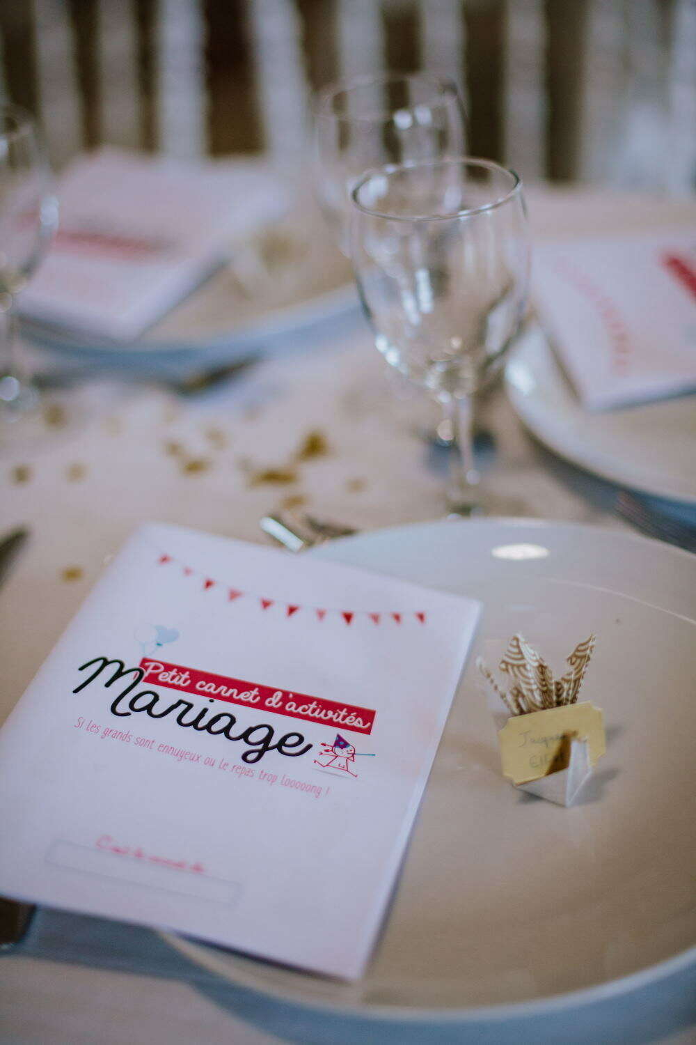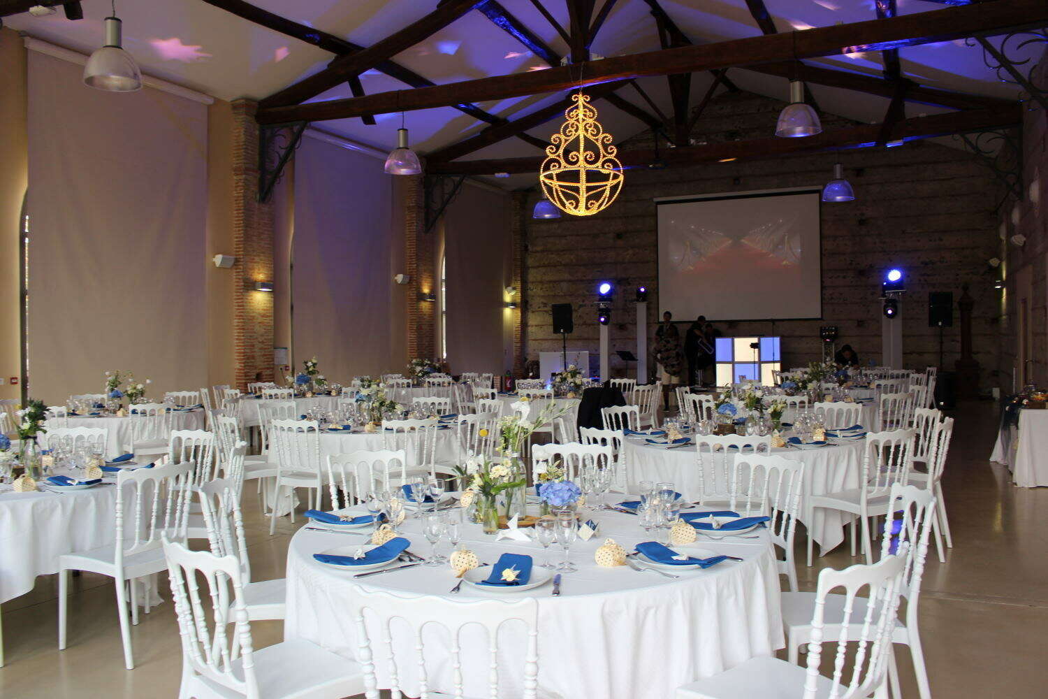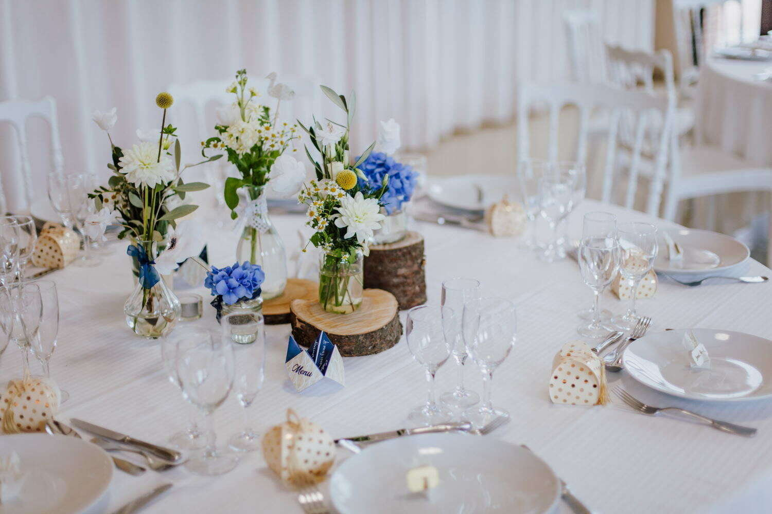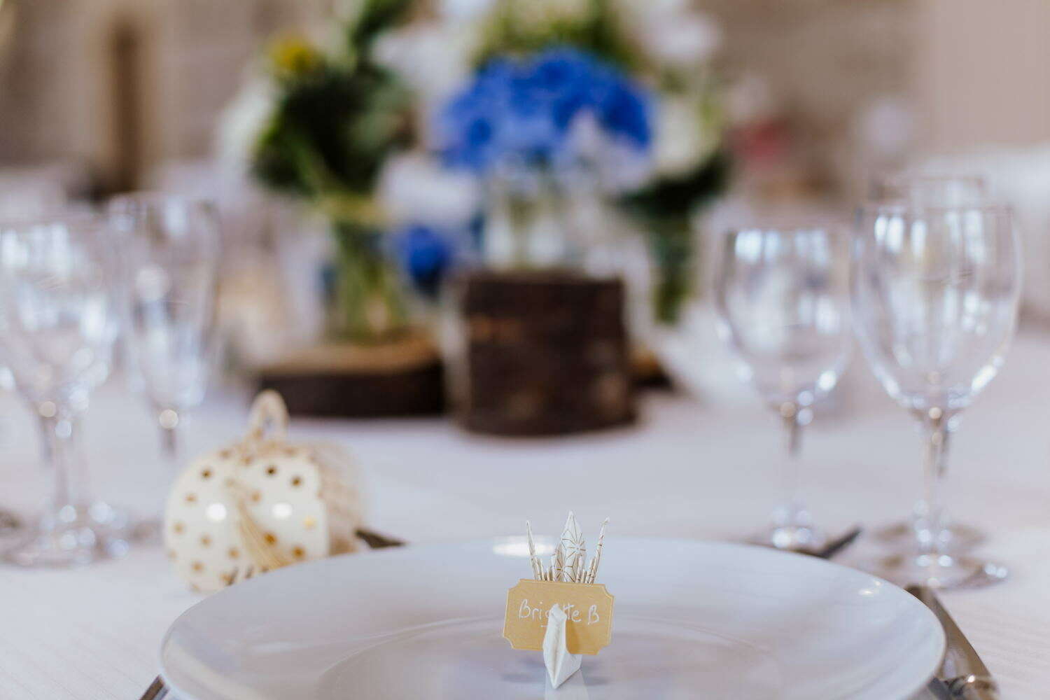 Une thématique bleu, or et blanc accompagnée de jolies déco en origami pour un effet classe et raffiné.